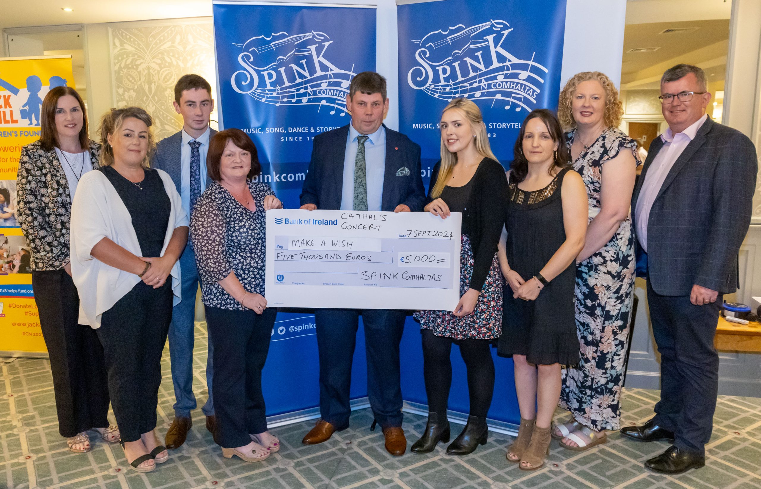 Three charities were the recipients of the fund-raising. Jack & Jill Foundation received €8,500 which will allow respite care to be provided to families across Laois and Offaly. Make a Wish Foundation and Debra Ireland received €5,000 each. All of the charities were chosen by the Clooney family. Representatives of each of the charities were present, and all of them spoke about the valuable services they provided, the importance of voluntary fund raising for their organisations, and how much they appreciated the donations raised. The presentations were made on 7th September.