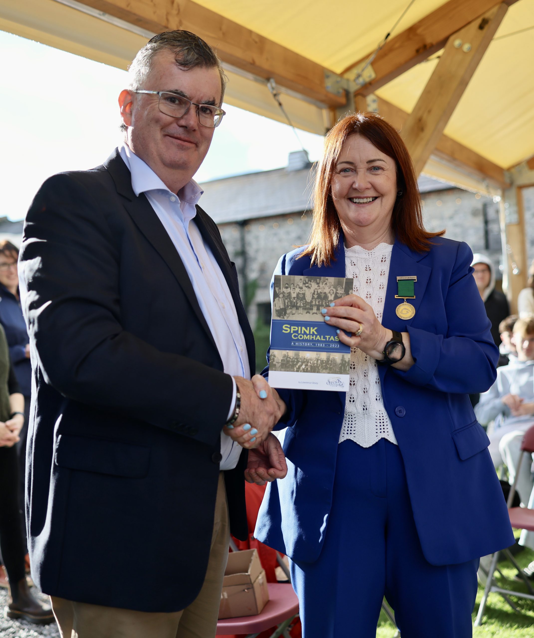 In her presentation remarks, Attracta noted the long service Lawrence had given to Spink Comhaltas, initially as branch secretary and later as Chairman.  During this time, there were a significant number of milestones achieved in the revival and development of the branch, including the establishment of a comprehensive music instrument bank, development of music education of students through the Comhaltas SCT exams, significant growth in membership numbers, an increase in the number of music teachers engaged, development of social media and websites for the branch, as well as comprehensive local community engagement including leading the raising of €30,000 for charitable causes.