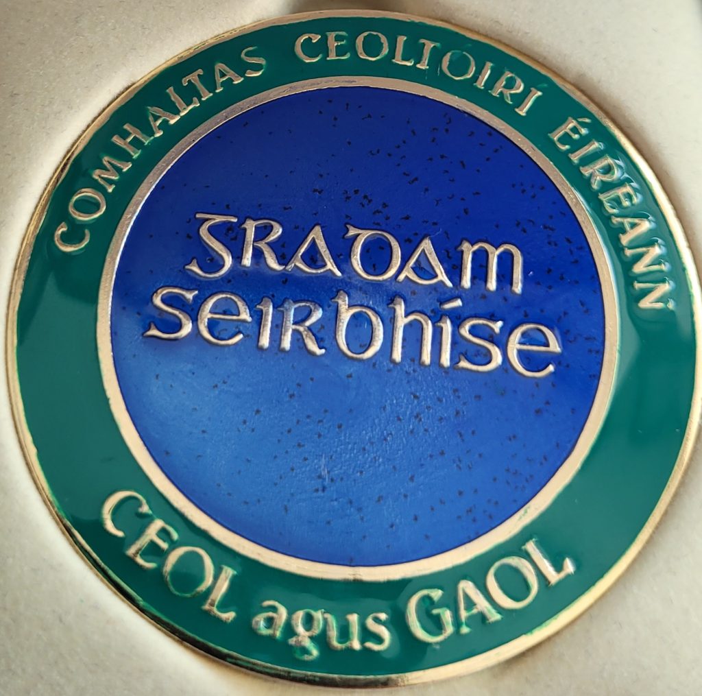 Comhaltas presents a number of awards to recognise people from a branch who have given exceptional service to the promotion of Comhaltas and traditional Irish music and culture.