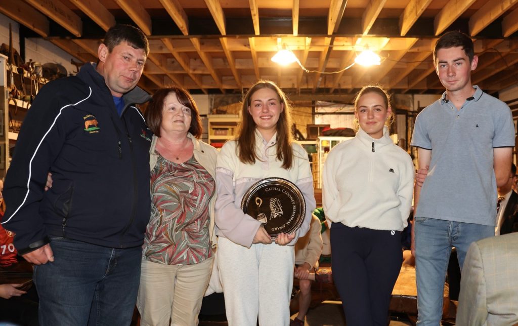 The inaugural winners of the Cathal Clooney Memorial Award are Katie and Lucy Doyle. Everyone in Spink Comhaltas would like to congratulate Katie, Lucy and Daniel on being this year’s recipients of the awards. Here they are presented with the award by Cathal’s father Willie, his mother Anne Marie, and his brother Liam.